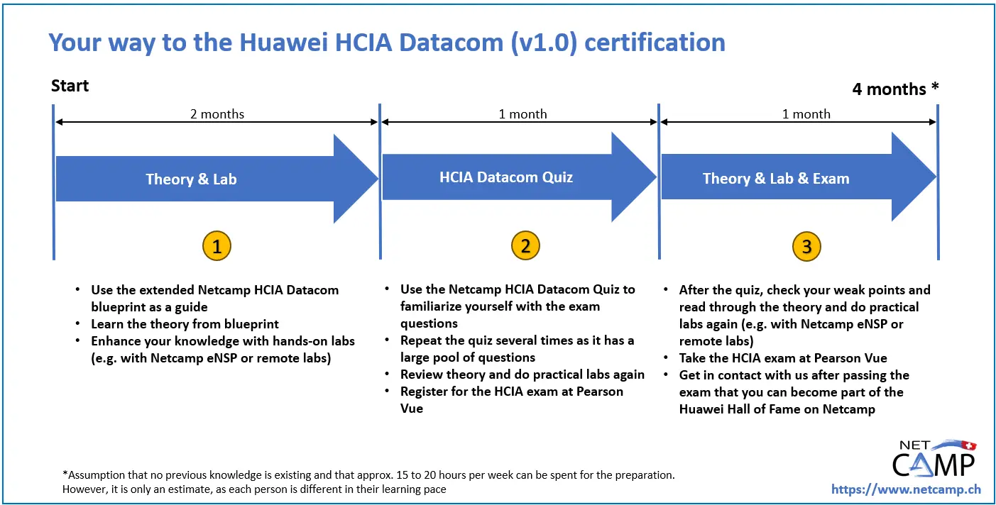 With our blueprint and the following HCIA Datacom certification guide, it is possible to achieve the Huawei HCIA Datacom certification in just 4 months.